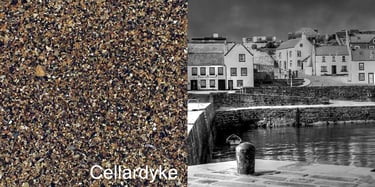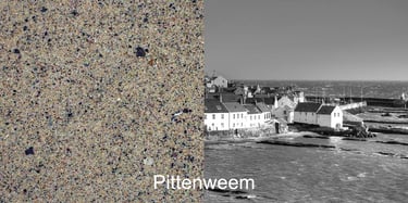 An enlarged photograph of 1"of sand from each location showing the beauty underfoot and often not noticed.